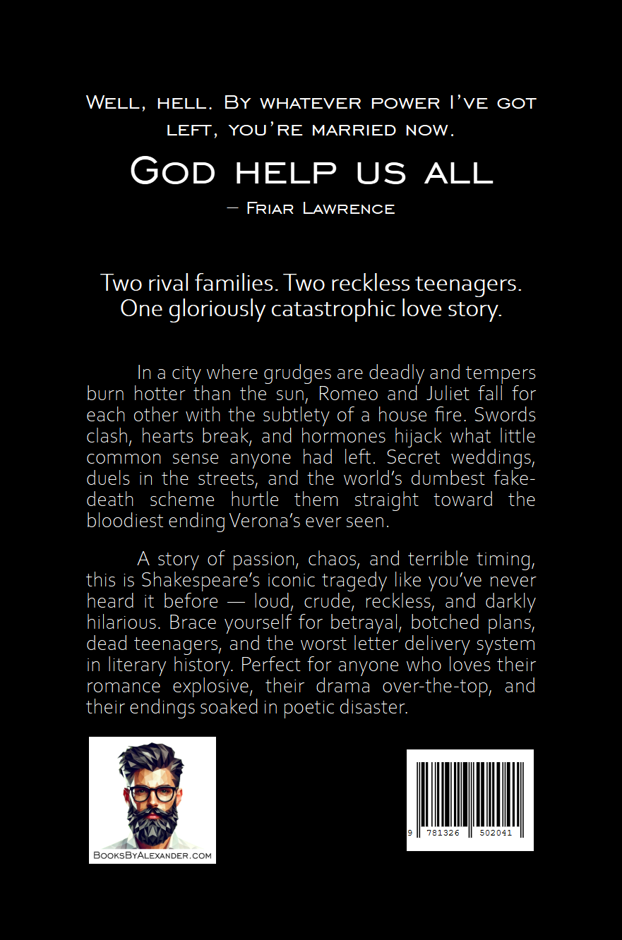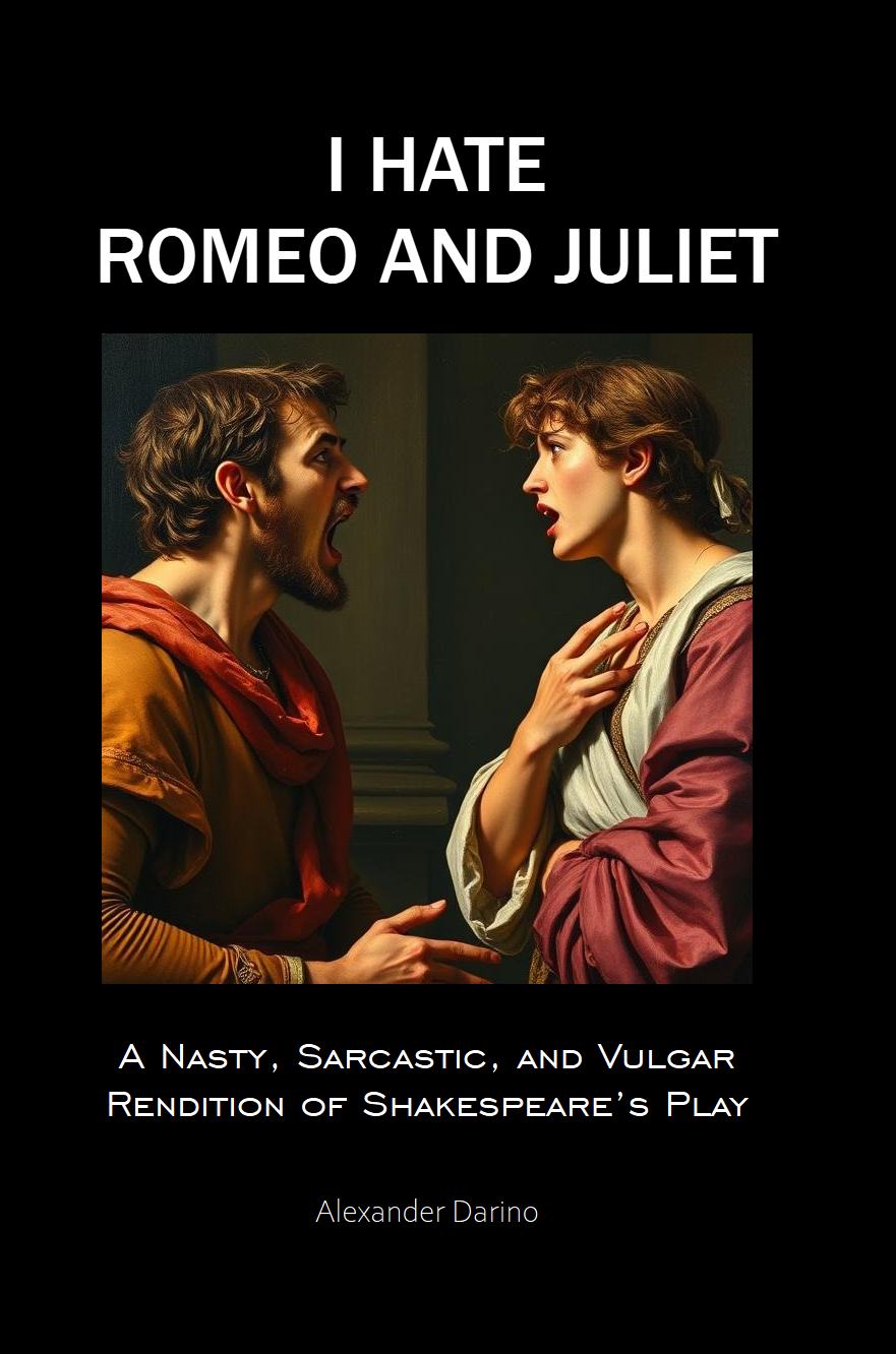 Forget everything your high school English teacher sobbed over. I Hate Romeo & Juliet takes Shakespeare’s iconic tragedy and drags it, kicking and screaming, through a dumpster fire of vulgarity, sarcasm, and weaponized stupidity. This ain’t poetry — it’s a full-throttle meltdown of horny teenagers, emotionally bankrupt adults, and one very tired priest trying (and failing) to keep two star-crossed dumpster fires from throat-punching fate. With sharp-tongued rewrites of every scene, this book is drenched in profanity, made-up slang, unhinged metaphors, and zero patience for Shakespeare’s so-called “romance.” Romeo is a drama sponge with a death wish. Juliet’s a chaos fairy with zero chill. And everyone else? Mostly dead, clueless, or both. Perfect for readers who’ve always wanted to slap the original play, scream “WHY?” at the characters, and see what happens when you lace classic literature with modern filth and a gallon of spite. This is Romeo & Juliet like you’ve never seen it — and hopefully never will again.